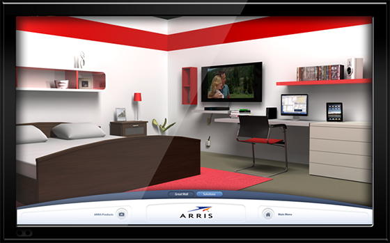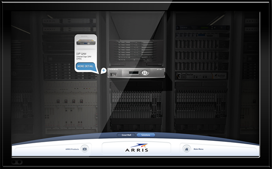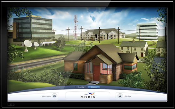 Working closely with the Arris team, TSG created a 3D game-like digital experience that allowed conference attendees to explore and interact with Arris's vast product and service offerings in a virtual environment. Potential customers were able to immerse themselves in the Arris world, interacting virtually with each product. As users found products that fit their needs, they could instantly input a request for more information about that exact product using an on-screen keyboard.