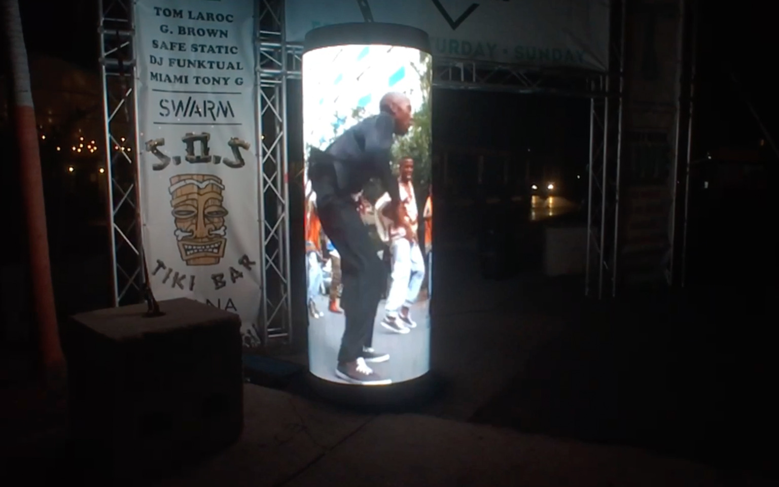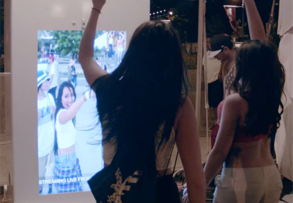 +Supergroup designed, built, and operated these larger than life video portals, which withstood the intense direct sunlight of LA, and survived a major thunderstorm in Philadelphia. Event-goers immediately understood what they were looking at, and shared a lot of laughs, dances, and occasionally a virtual toast. +Supergroup has installed and supported the Window Walls every year since.