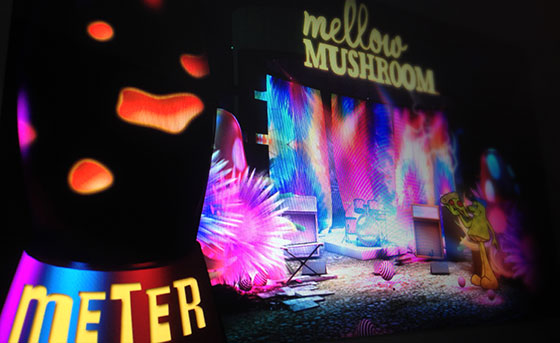 +Supergroup was asked to create an attention grabbing interactive activity for Mellow Mushroom's annual conference, so we delivered a fresh, mind watering experience we call the "Mellow Mushroom Mind Slice". Presented on a large, HD display, the user sits down to see an empty, dimly lit stage, set for a rock band. The user then places a NeuroSky Mindwave on their head, and within a few short seconds, their mind begins to control the rock show – both musically and visually.
