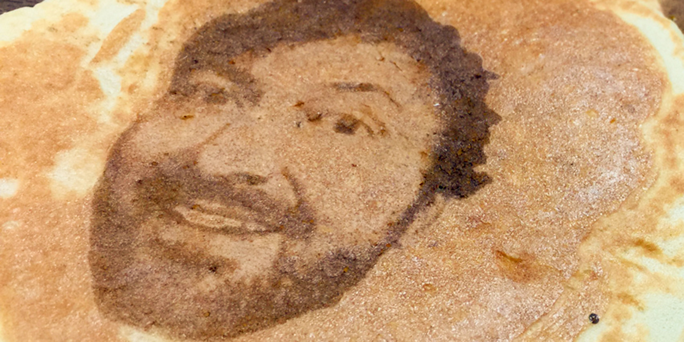 Images are taken using a cell phone camera linked to a laptop computer, which then translates the image for the laser hardware. Once the software has finished its translation, the laser transposes the selfie image onto the surface of a pancake. Housed within the mobile Pancake Selfie Express, the selfie-to-pancake process takes less than five minutes from start to finish – from batter to work of selfie art.