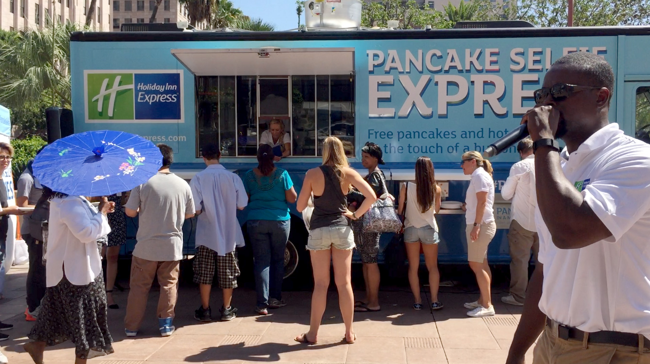The promotion was a success and winner of a Bronze Event Marketer Award, earning over 175 million PR impressions, 1.5 million social media impressions, and 283,000 activation exposures in the first tour. It was such a successful promotion, that IHG came back for a second tour, and +Supergroup yet again delivered, only this time with improved exciting new technology: faster lasers capable of doing full greyscale images, and a custom animated GIF camera so people could forever see their face being printed on a pancake!